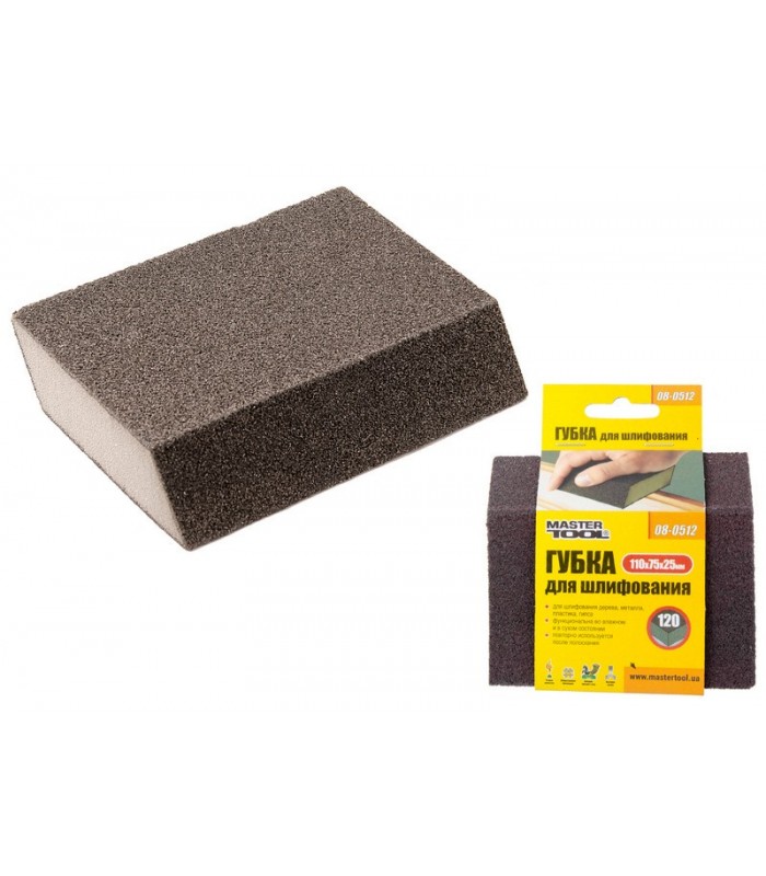 Brúsna hubka skosená P120 110*75*25 mm je ideálnym nástrojom pre šmirgľovacie práce na kovových, drevených a iných materiáloch.