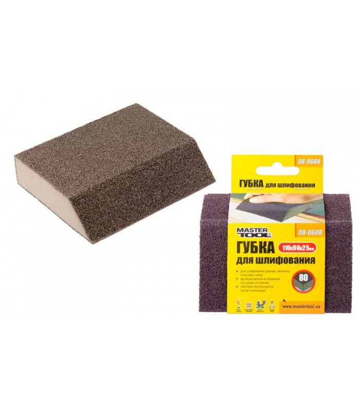 Brúsna hubka skosená trapez P80 110*90*25 mm je vynikajúcim nástrojom pre šmirgľovacie práce na kovových, drevených a iných materiáloch.