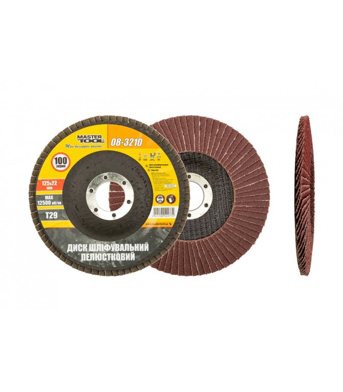 Brúsny lamelový kotúč T29 P100 125*22 mm: Vyrobený z elektrokórunndu (oxidu hliníka), tento kotúč je odolný a efektívny pri brúsení.