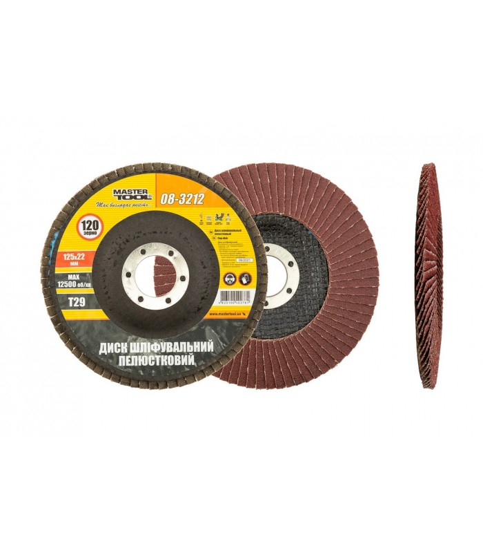 Brúsny lamelový kotúč T29 P120 125*22 mm: Vyrobený z elektrokórunndu (oxidu hliníka), tento kotúč je odolný a efektívny pri brúsení.