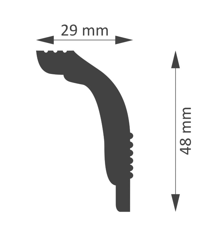 Dekoratívna stropná lišta je skvelý spôsob, ako dodať interiéru charakter. Vďaka bohatej kolekcii vzorov dokážeme dodať eleganciu, štýl a originalitu každému priestoru. Ľahký a ľahko zostaviteľný. Dokonale maskujú nerovnosti stien a ich drobné chyby. Sú vhodné na maľovanie vodou riediteľnými farbami (akrylový latex a pod.). Od elegantného glamour po jednoduché, moderné formy. Polystyrénová lišta. Dĺžka lišty je 2,0 m.