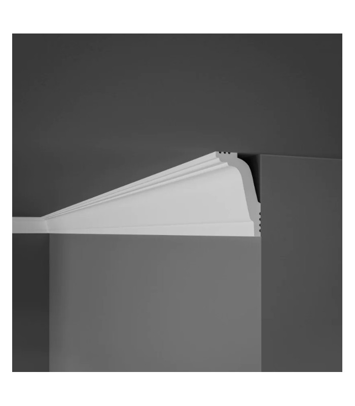 Dekoratívna stropná lišta je skvelý spôsob, ako dodať interiéru charakter. Vďaka bohatej kolekcii vzorov dokážeme dodať eleganciu, štýl a originalitu každému priestoru. Ľahký a ľahko zostaviteľný. Dokonale maskujú nerovnosti stien a ich drobné chyby. Sú vhodné na maľovanie vodou riediteľnými farbami (akrylový latex a pod.). Od elegantného glamour po jednoduché, moderné formy. Polystyrénová lišta. Dĺžka lišty je 2,0 m.