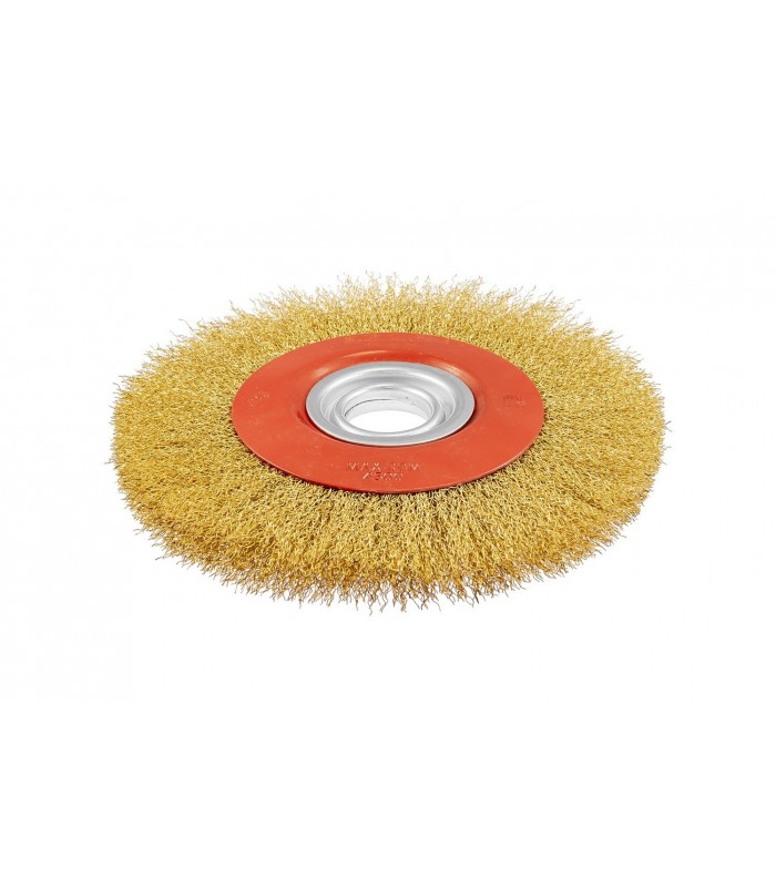 Kotúčová drôtená kefa bočné s ryhovaným mosadzným drôtom Ø 200*32 mm je ideálnym nástrojom pre čistenie povrchov od lakových a náterových vrstiev, hrdze, škvŕn a rôznych nečistôt.
