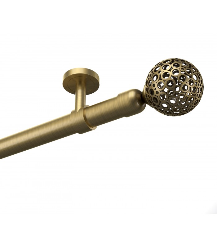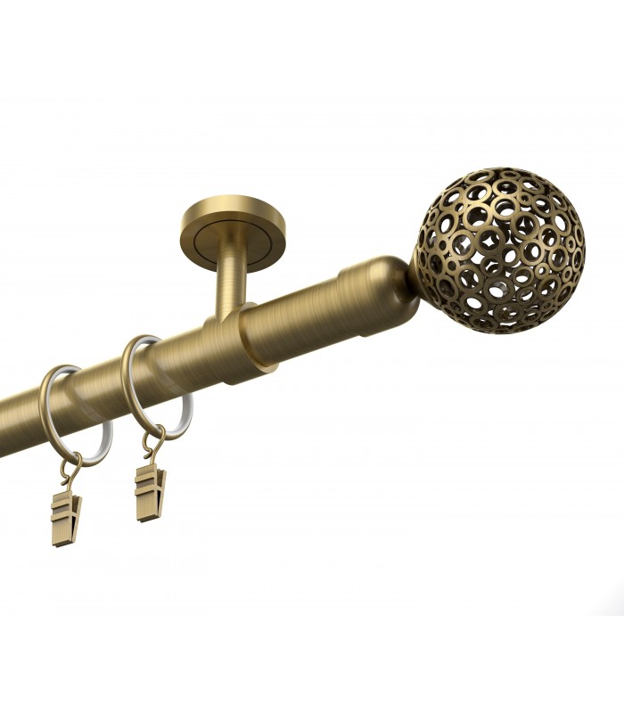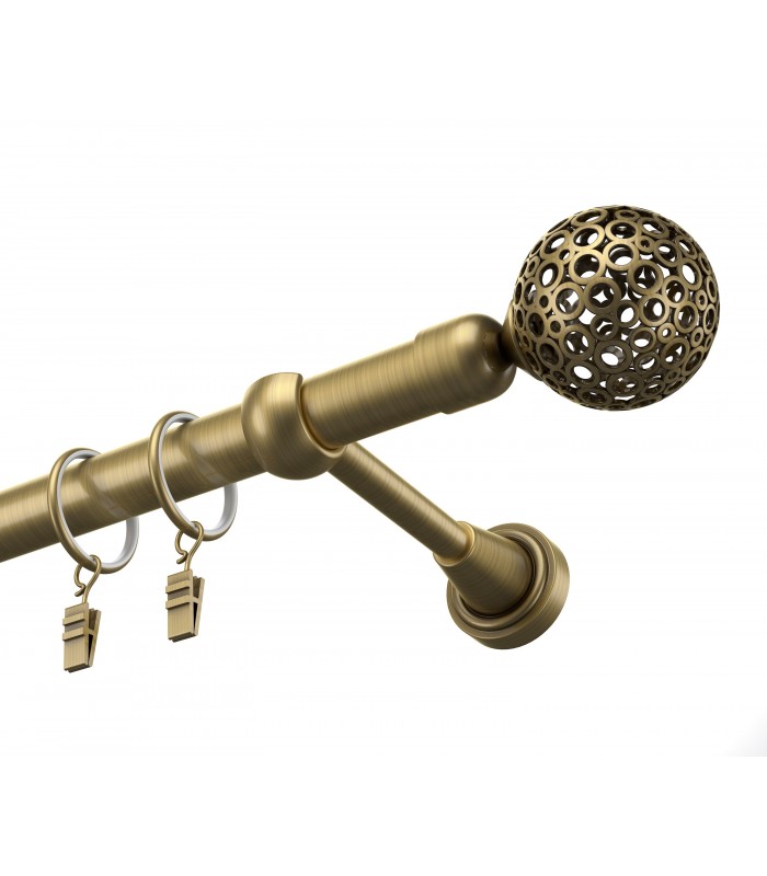 Elegantná a pevná kovová garníža v prevedení antík s dizajnovou koncovkou Gula Modern. Vhodná pre klasické aj moderné interiéry. Vďaka kvalitnému spracovaniu a stabilnému uchyteniu zabezpečuje dlhodobú spoľahlivosť aj pri ťažších závesoch.