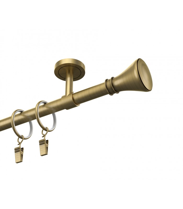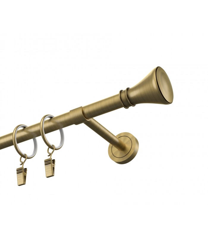 Elegantná a pevná kovová garníža v prevedení antík s dizajnovou koncovkou Koloseo. Vhodná pre klasické aj moderné interiéry. Vďaka kvalitnému spracovaniu a stabilnému uchyteniu zabezpečuje dlhodobú spoľahlivosť aj pri ťažších závesoch.
