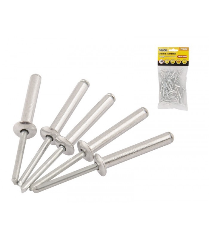 Hliníkový vysekávací nit 4,8*14,48 mm, 50 ks MASTERTOOL je ideálny pre spoľahlivé bezdemontážne spojenie plechových materiálov.