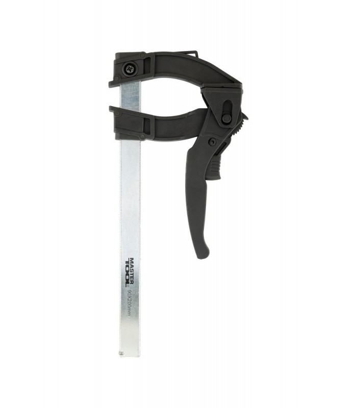 Páková stolárska svorka F-Type s rýchlospojovacím mechanizmom, rozmery 200 * 90 mm a stlačovou silou 600 N.