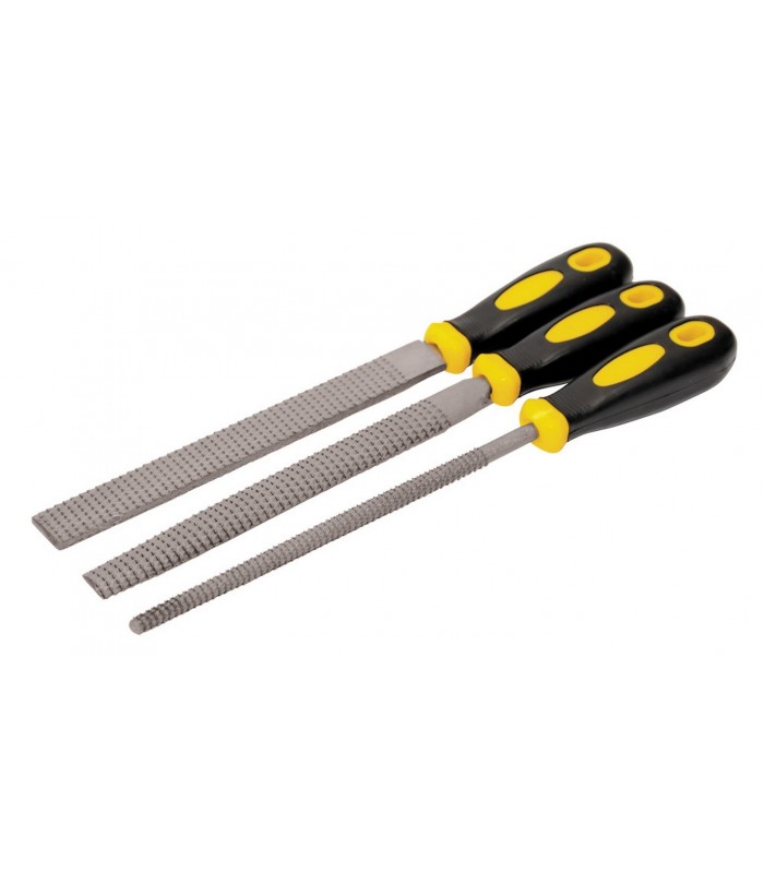 Určené na vykonávanie stolárskych a ďalších prác.Rašple na drevo dĺžky 200 mm, 3 ks - plochi, okrúhly a polkruhovoy s dvojzložkovou rukoväťou.
