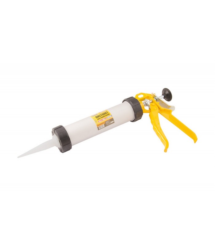 Je vybavená plastovým dávkovačovým hrotom, ktorý umožňuje presné a rýchle aplikovanie tesniacich hmôt v mäkkom obale.