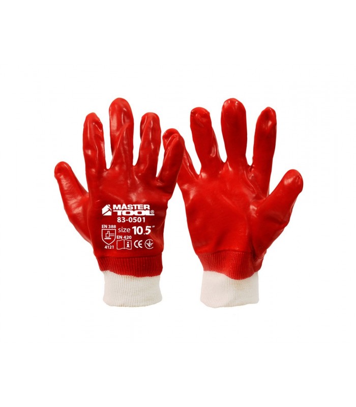 Rukavice pracovné MASTERTOOL z bavlny s červenou PVC povlakom,...