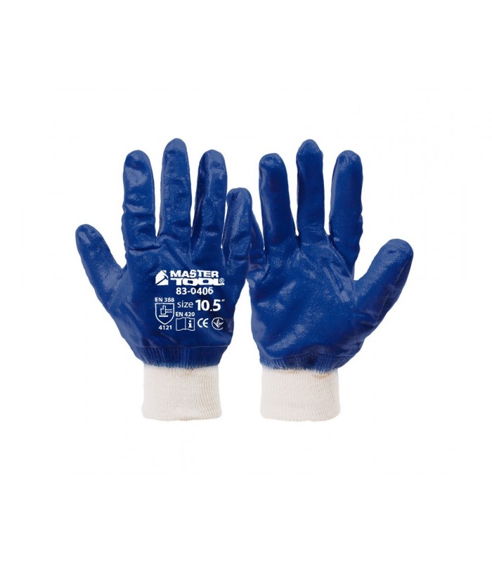 Rukavice pracovné MASTERTOOL z bavlny s modrým nitrilovým povlakom...
