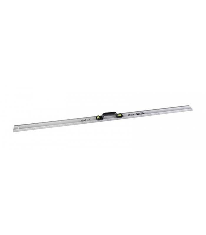 Hliníkové pravítko s rukoväťou dlhé 120 cm je vybavené dvoma libelami, ktoré umožňujú presné určenie horizontálneho a vertikálneho umiestnenia povrchov.