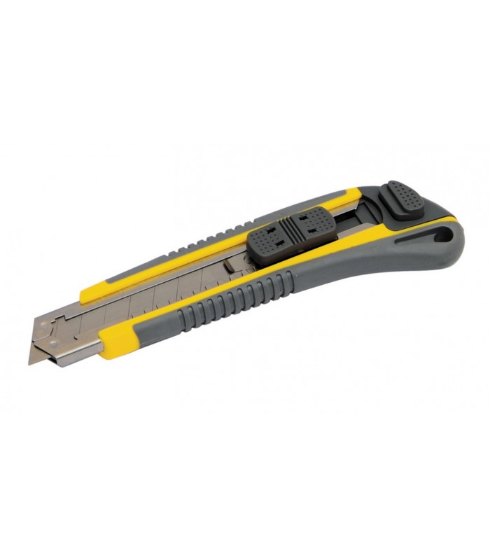 Tento univerzálny nož s odlamovacou čepeľou 18 mm AUTO je vyrobený z kvalitného ABS plastu so TPR povlakom, ktorý poskytuje pohodlné a bezpečné držanie.