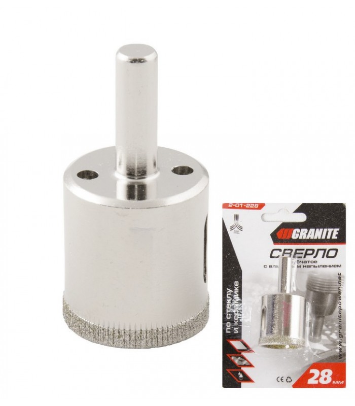 Korunka vykružovacia diamantová GRANITE s priemerom 28 mm je výborným nástrojom pre precízne vŕtanie otvorov do skla, sklolaminátu, zrkadiel, keramiky a porcelánu.
