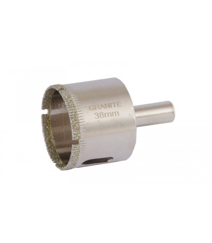 Korunka vykružovacia diamantová GRANITE s priemerom 38 mm je výborným nástrojom pre precízne vŕtanie otvorov do skla, sklolaminátu, zrkadiel, keramiky a porcelánu.