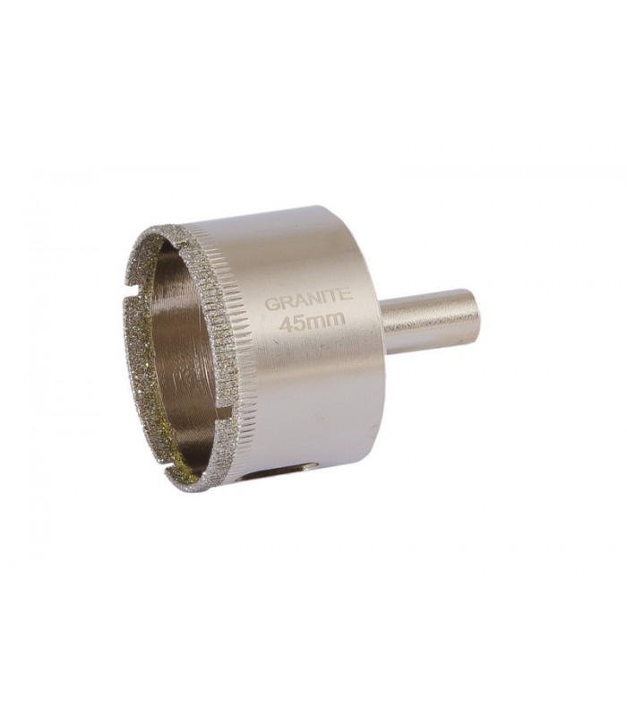 Korunka vykružovacia diamantová GRANITE s priemerom 45 mm je výborným nástrojom pre precízne vŕtanie otvorov do skla, sklolaminátu, zrkadiel, keramiky a porcelánu.