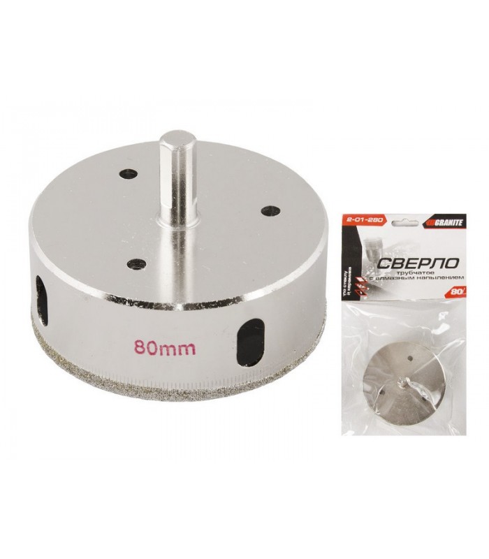 Korunka vykružovacia diamantová GRANITE s priemerom 80 mm je optimálnym riešením pre vŕtanie otvorov do skla, sklolaminátu, zrkadiel, keramiky a porcelánu.